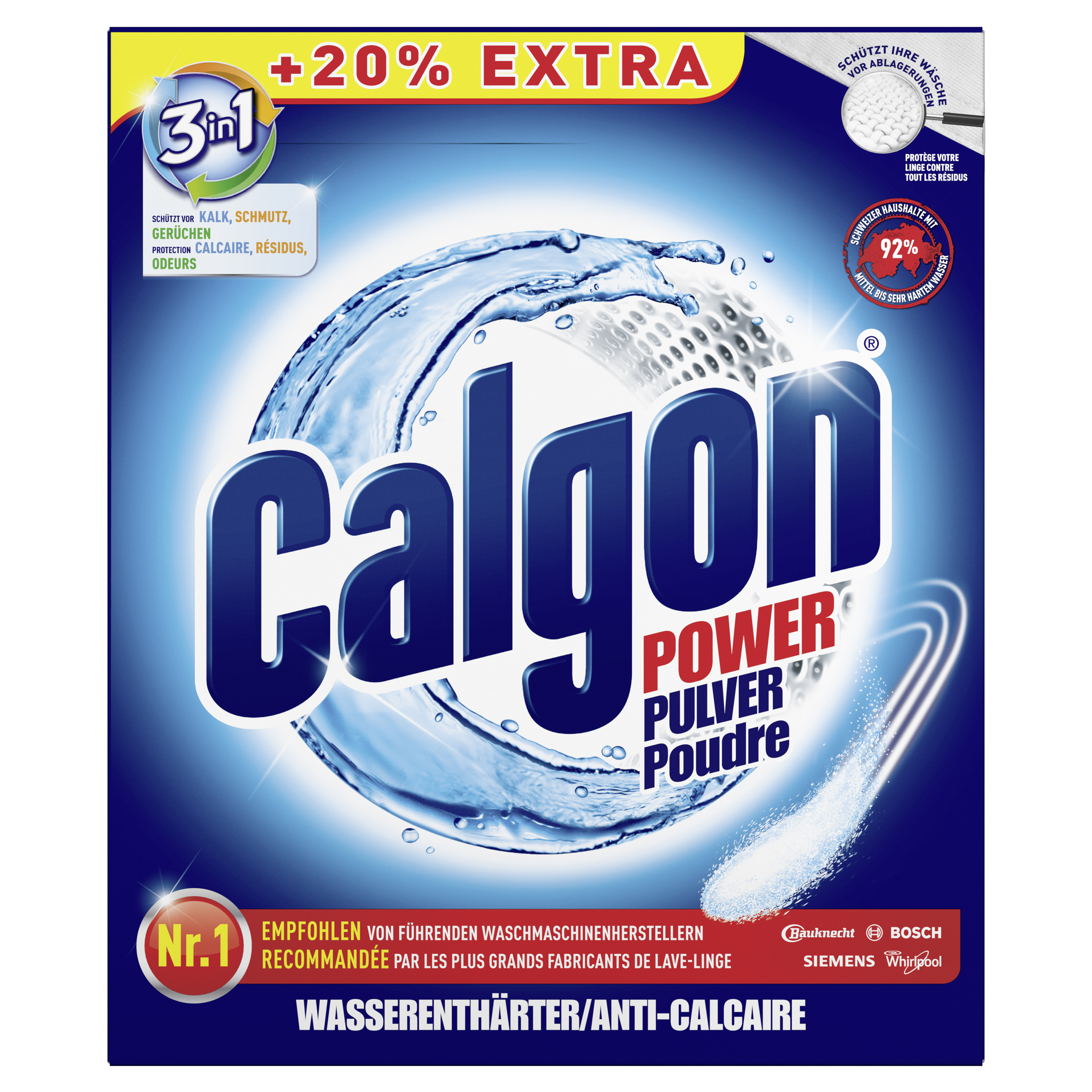 La formule 3en1 de Calgon n'est pas seulement disponible sous forme de gel et de pastilles, mais aussi sous forme de poudre. Grâce à son action anticalcaire, la poudre Calgon améliore rapidement la performance des lavages. Calgon propose également des informations pratiques sur ses produits ainsi que des conseils d'utilisation pour vous, en cliquant ici.